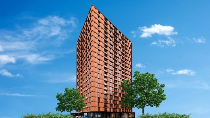 El sistema de Muro Cortina Frame MCF 034 de HPD Glassgroup permite fabricar paneles completos que luego se instalan en obra con facilidad, dando un acabado limpio a los edificios de oficinas y/o comerciales.