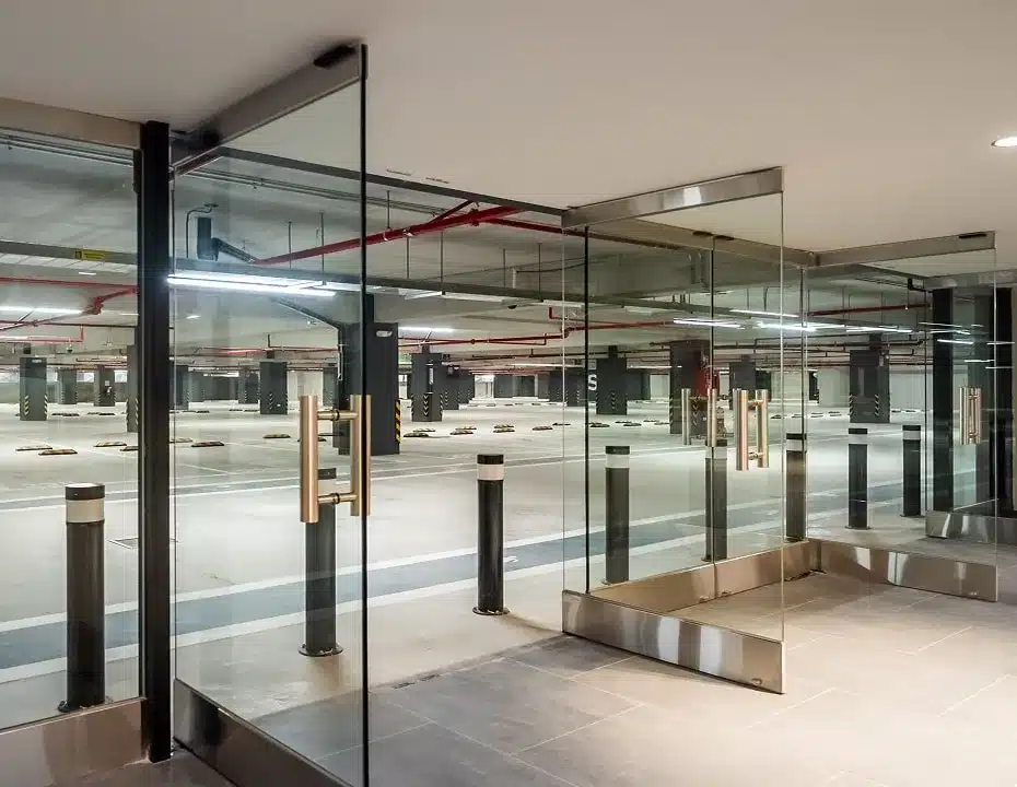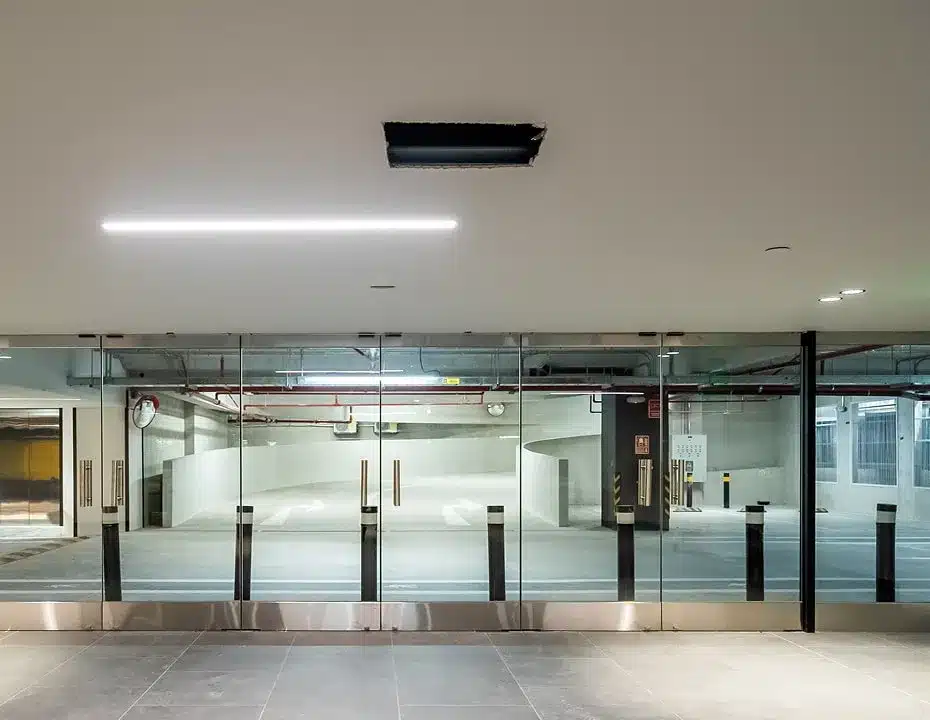 La fachada combina muro cortina, PAC y vidrios laminados y templados, junto a barandas, mamparas y espejos, en una propuesta integral de alto rendimiento. El diseño fue optimizado con tecnología BIM y análisis térmico-estructurales, garantizando eficiencia y durabilidad en entornos de alta exposición solar.