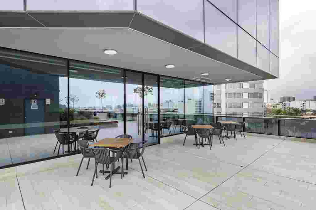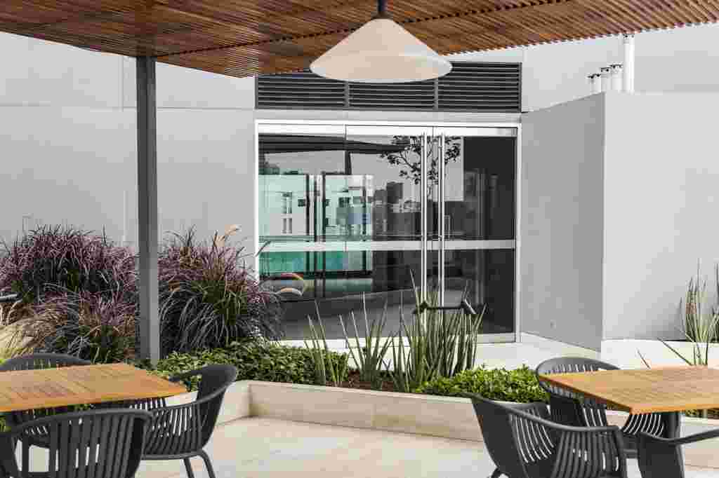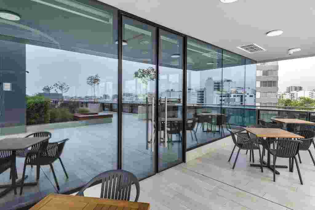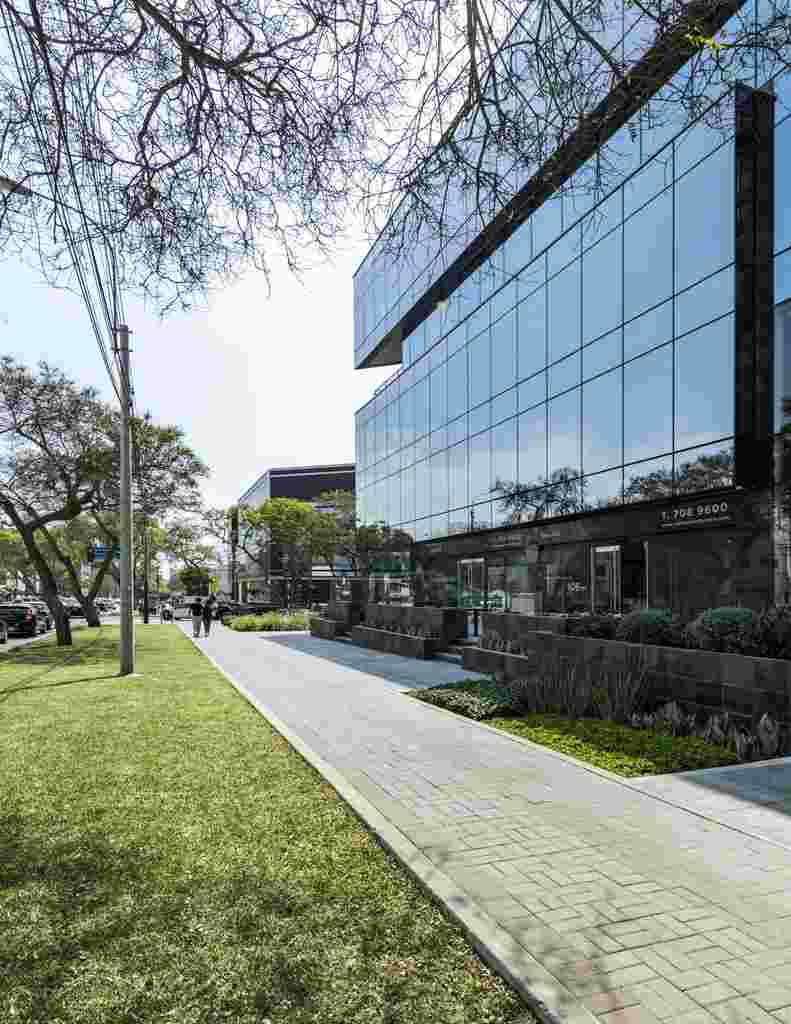 Edificio de 9 pisos que incorpora vidrios templados e insulados en sistemas de muro cortina y revestimientos PAC, optimizando la luz natural, el confort térmico y la eficiencia energética. El 75 % de las oficinas cuenta con iluminación natural. Diseño premium con certificación LEED Platinum.