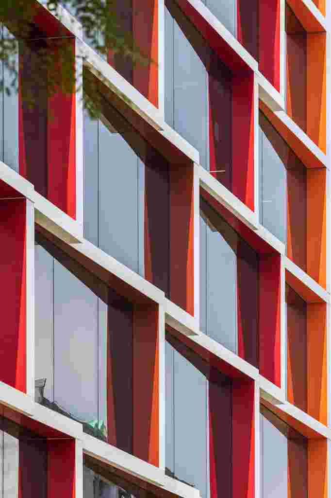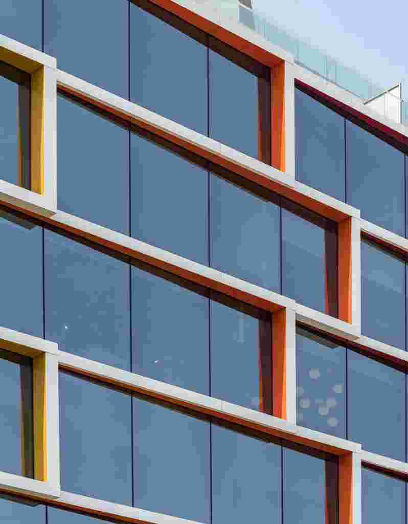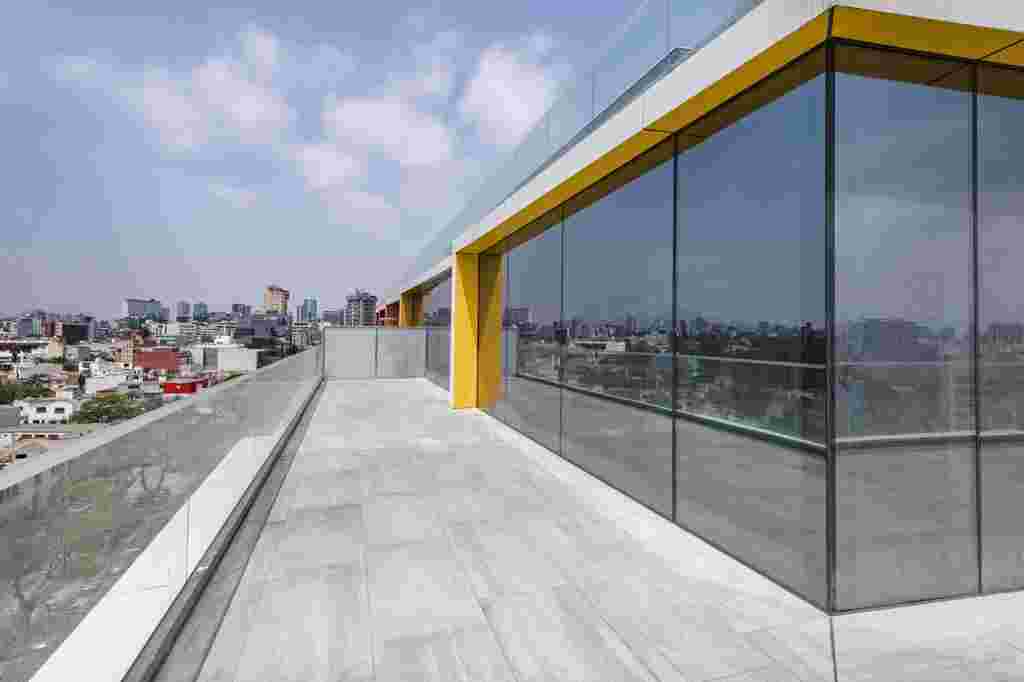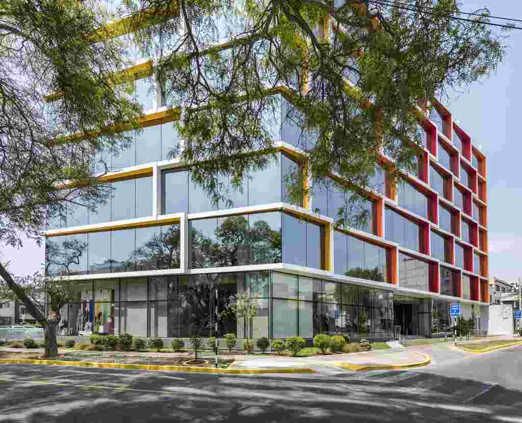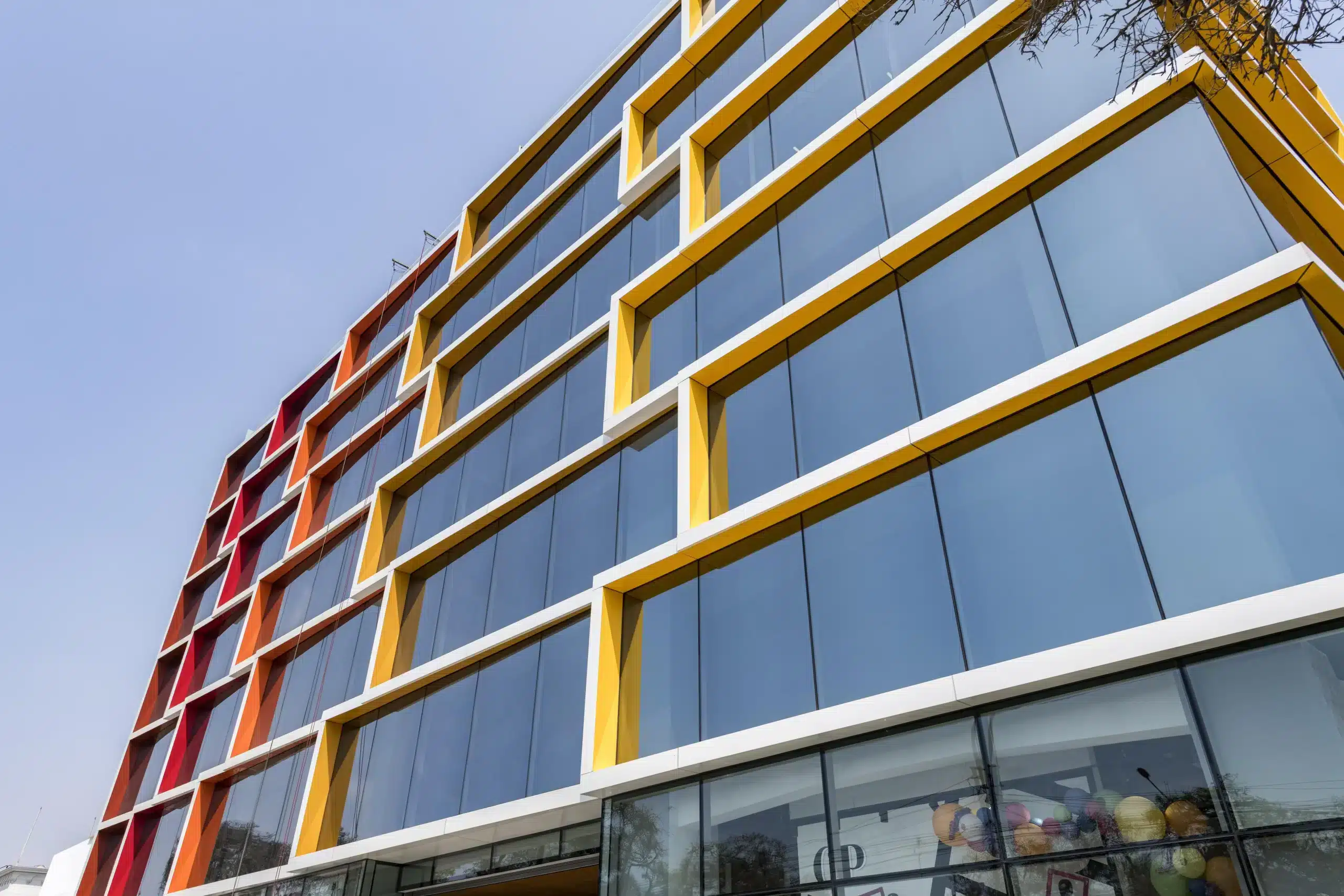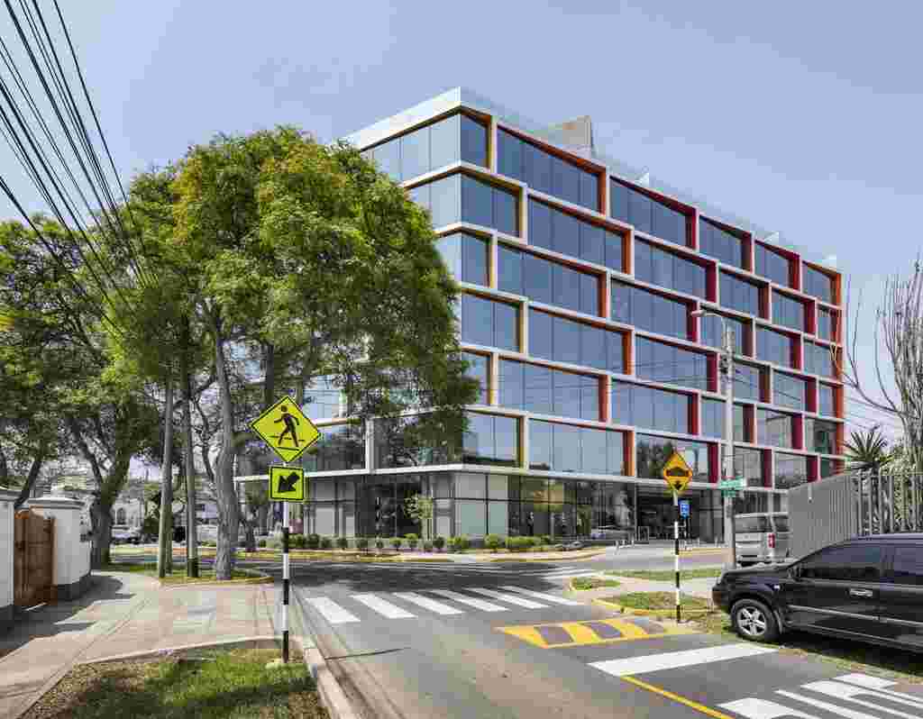 La integración de vidrios laminados, insulados y templados en sistemas de muro cortina y perfiles de aluminio, combinada con revestimientos PAC de colores, refuerza la iluminación natural, el diseño y la eficiencia del edificio. Todo ello se articula en una propuesta arquitectónica coherente para oficinas y un centro comercial lifestyle en Miraflores.