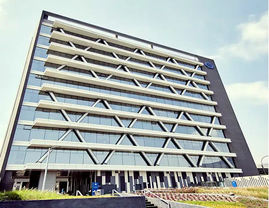 Para esta sede, suministramos e instalamos muro cortina Stick con vidrio laminado y revestimiento PAC, también integramos vidrio templado a la carpintería de aluminio creando fachadas y espacios interiores modernos, funcionales y adaptados a las necesidades educativas del centro.