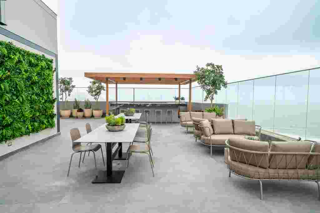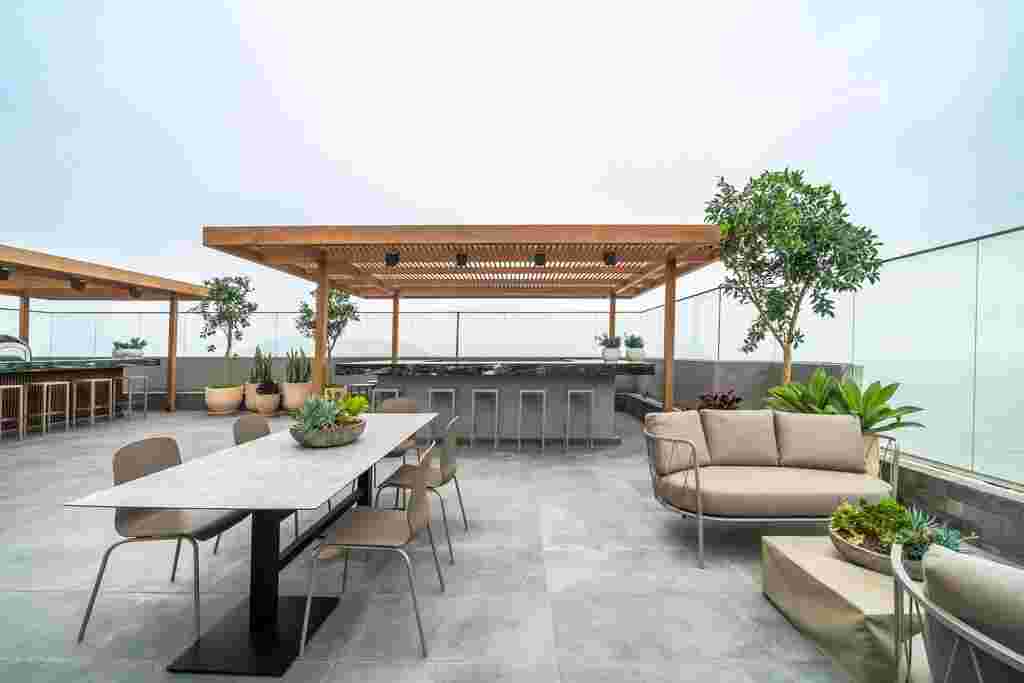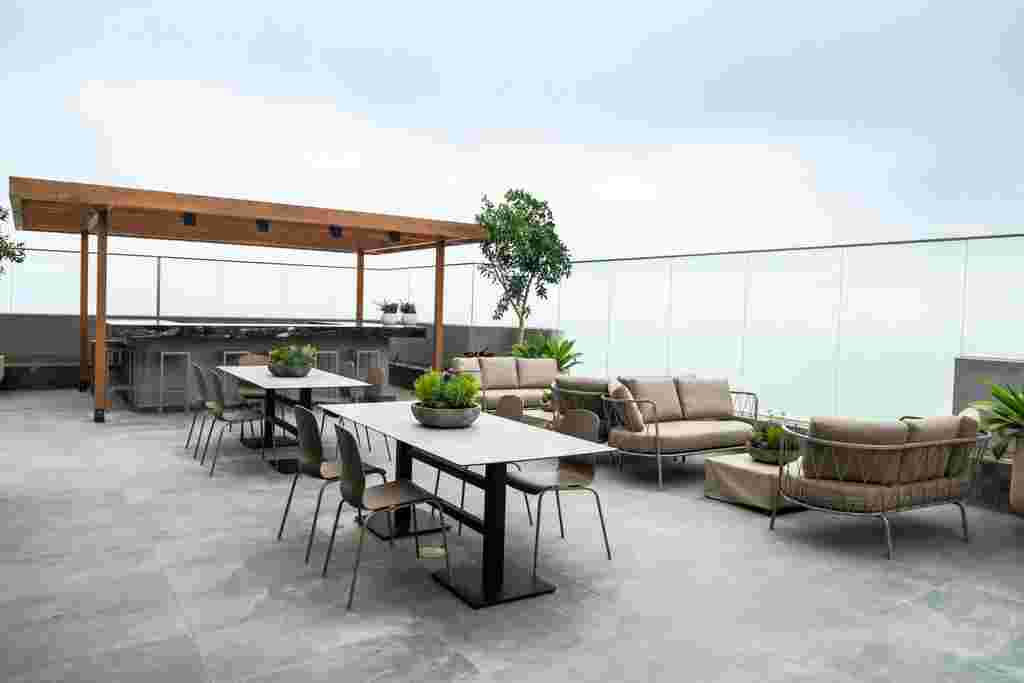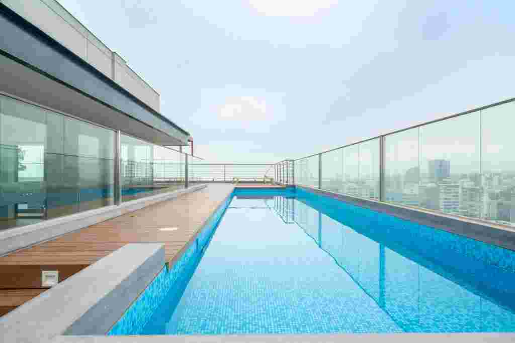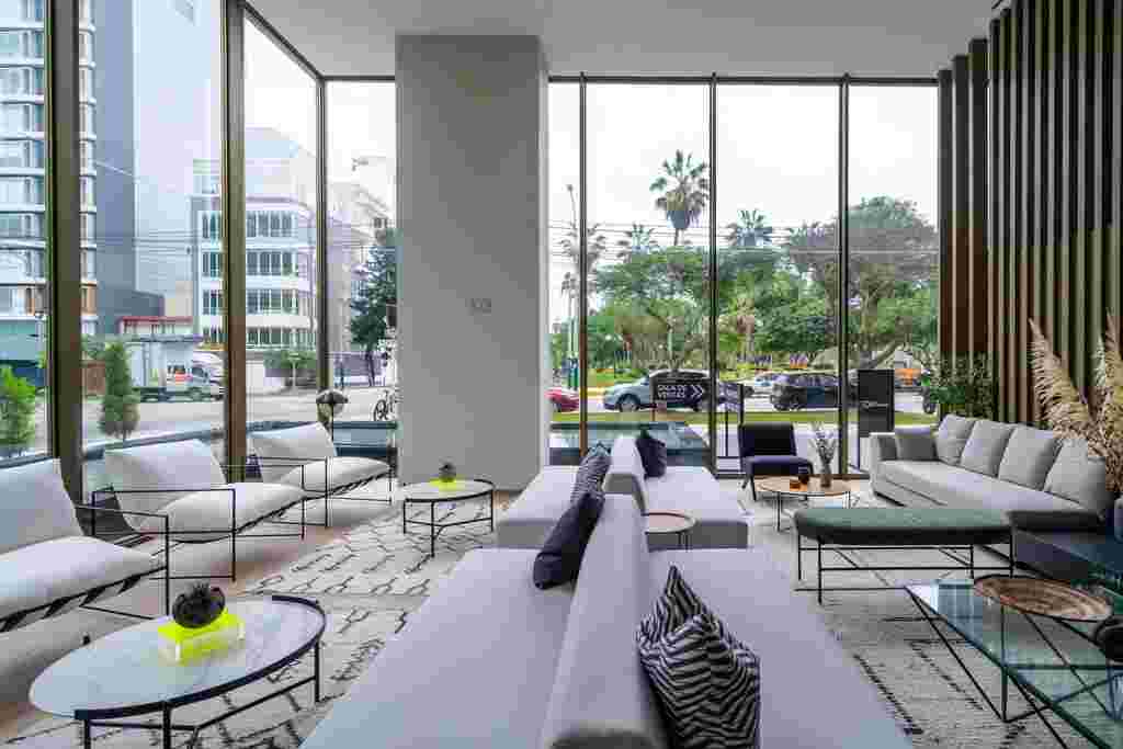 El vidrio templado integrado en los sistema de muro cortina, mamparas y ventanas realzan la elegancia de The Modern, un proyecto exclusivo que combina diseño contemporáneo, funcionalidad y vistas panorámicas, redefiniendo el confort y la sofisticación urbana.