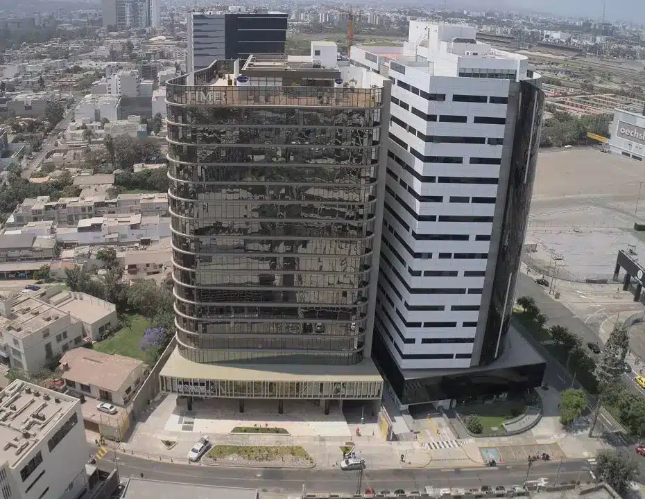 El muro cortina con vidrio reflejante reduce la ganancia térmica y maximiza la iluminación natural. Los vidrios se integran de forma armónica, ofreciendo una vista panorámica de la ciudad desde la terraza, en un entorno que combina confort, eficiencia y diseño.